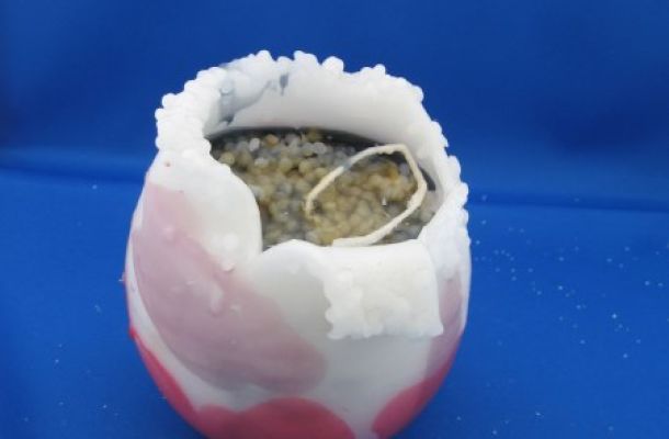 Met behulp van een ballon word een kaars gemaakt.